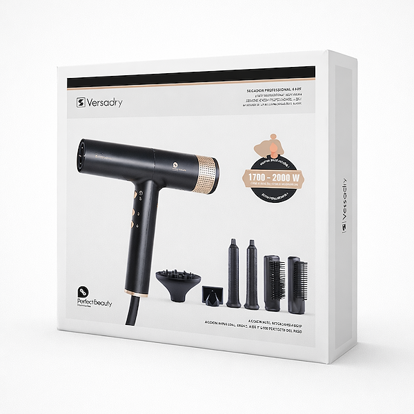 O VersaDry 6-em-1 2000W da Perfect Beauty foi desenvolvido para quem procura uma solução completa, fiável e tecnicamente sólida, sem depender de discursos comerciais ou escolhas impostas. Trata-se de um secador profissional pensado para utilizadores que valorizam controlo, versatilidade e eficiência real, tanto em ambiente de salão como em casa, quando o nível de exigência é elevado.