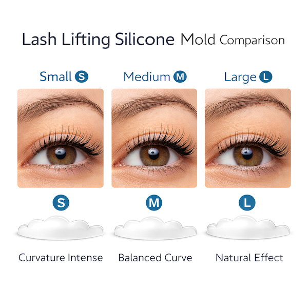 Ao ser aplicado na pálpebra, o molde define a forma final das pestanas, influenciando diretamente o resultado do tratamento.