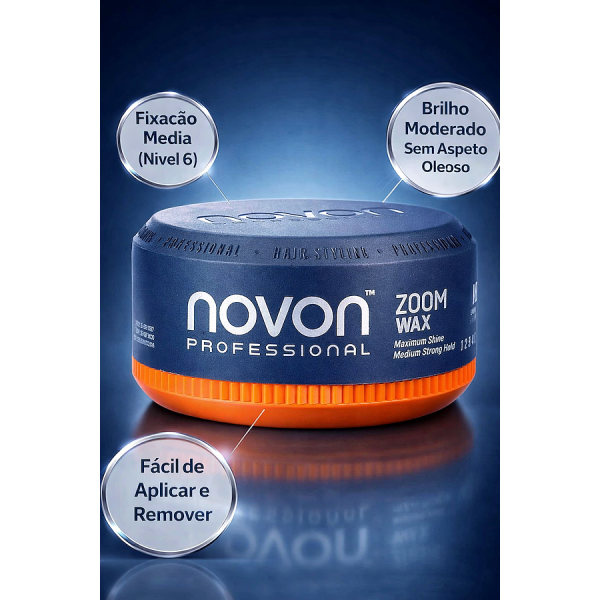 A Cera Zoom Fixação Média Nº6 da Novon Professional foi desenvolvida para quem quer modelar o cabelo com liberdade, mantendo um visual natural, sem efeito pesado ou artificial.